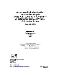 - ECC2554 Trial trenched evaluation on Areas A, B, D, GJ, H, J, N, V and YP at Colchester Garrison PFI site, Colchester, 2002 (Ref: ECC2554)