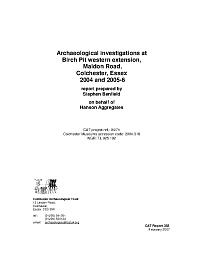 | Title | Archaeological investigations at Birch Pit western extension, Maldon Road, Colchester, Essex. 2004 and 2005-6 |