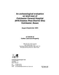 CAT Report 165, November 2001 CAT project code: 01/6c Colchester Museum accession code: 2001-151 Principal planning reference: COL/97/0221
