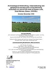 | Title | Archaeological fieldwalking, metal-detecting and geophysical surveys plus a trial-trenching evaluation on land to the west of Dawes Lane, West Mersea, Essex, CO5 8GJ |